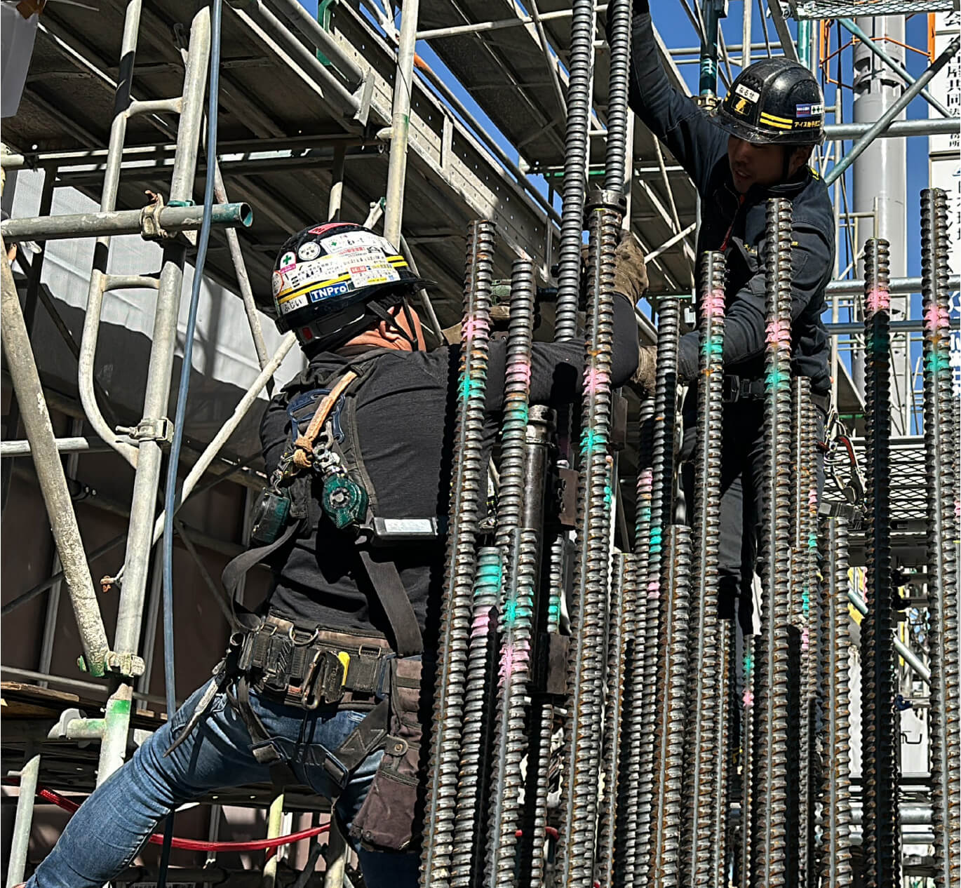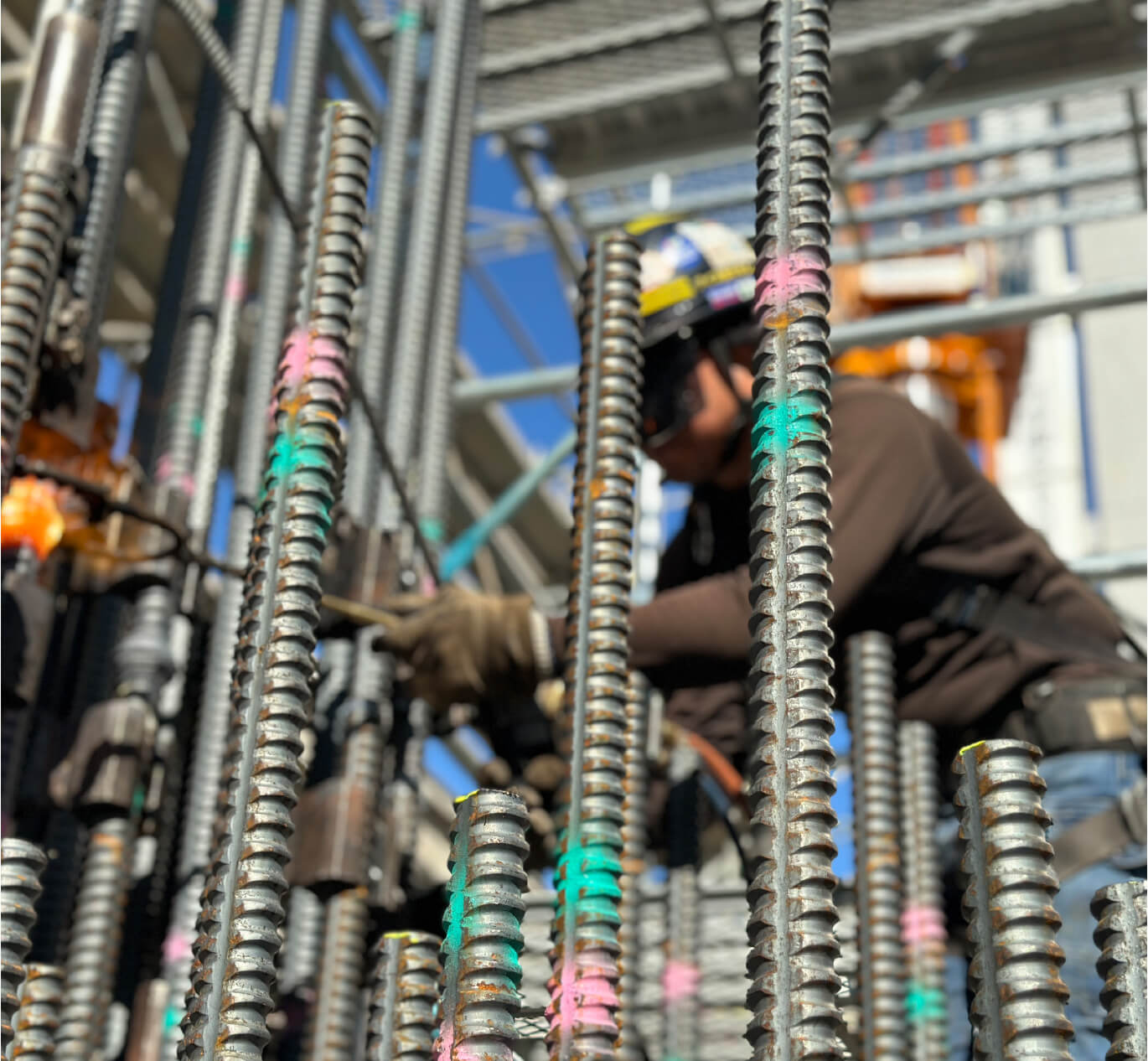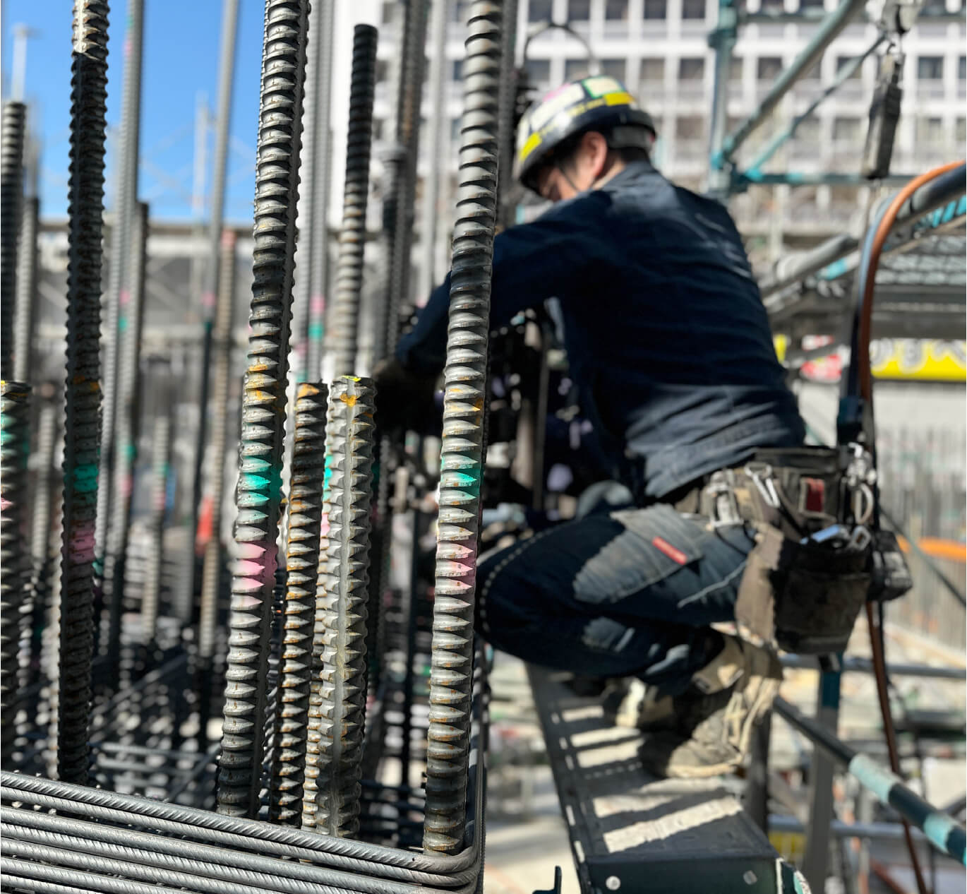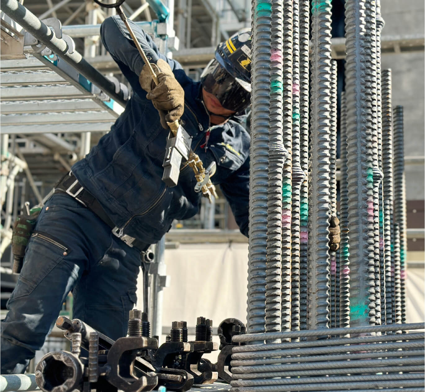名古屋市をメインに、愛知県、岐阜県、三重県の東海3県で、鉄筋工事の現場において鉄筋どうしを繋ぎ合わせる「継手工事」を請け負っております。